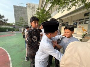 Tak lama kemudian, kegiatan musafahah pun dimulai. Satu per satu siswa bersalaman dengan guru dan karyawan sekolah, saling mengucapkan “mohon maaf lahir dan batin.” Suasana bahagia dan tawa ringan bercampur menjadi satu, menciptakan suasana yang begitu manusiawi dan menyentuh hati. Inilah wajah pendidikan yang bukan hanya mendidik akal, tapi juga membentuk hati yang peka dan penuh kasih.